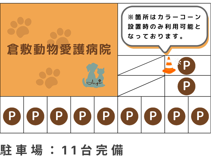 | 狂犬病予防注射 | 年に1回の接種が法律で定められております。(推奨:4〜6月) | 倉敷市・岡山市にお住まいの方は通年、注射済み登録手続きを代行いたします。 上記以外地域の方は、注射済票のみのお渡しとなります。 |