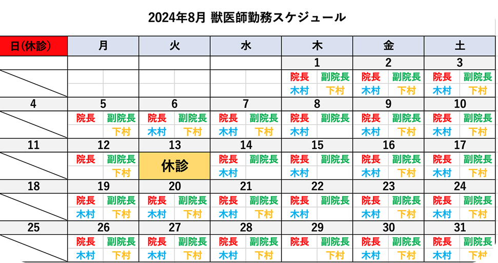 | 午前 | ◯ | ◯ | ◯ | ◯ | ◯ | ◯ | 休診 |